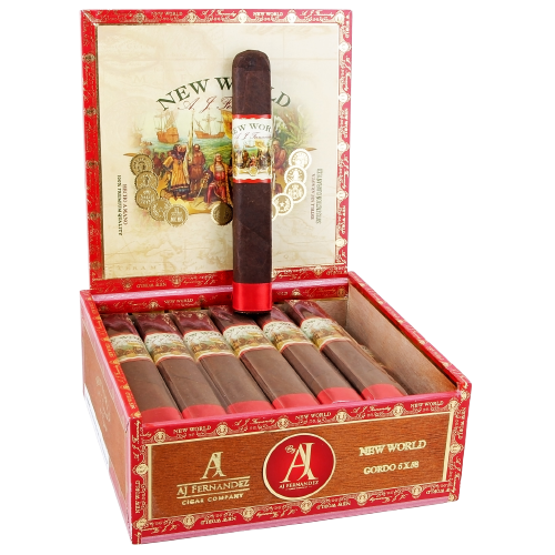 New World by AJ Fernandez is a thoughtful blend that pays homage to the roots of tobacco without the typical fanfare. This medium-full bodied cigar is a Nicaraguan puro, indicative of its pure, deep character. Each cigar is handmade in Esteli, featuring a rich, dark Nicaraguan maduro wrapper, a Jalapa binder, and fillers from Ometepe, Condega, and Esteli. From the first draw, expect earthy tones intertwined with cocoa and a hint of spice, gradually evolving into a more robust peppery profile that sustains a balance throughout the smoke. This stick is perfect for those who appreciate the intricacies of a maduro without overwhelming the palate. Ideal pairings include a neat whiskey or a deep, dark roast coffee, both of which compliment the cigar's inherent earthiness while allowing the subtler notes to shine.